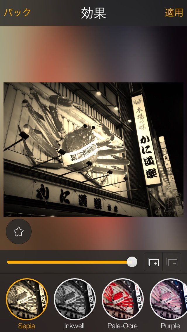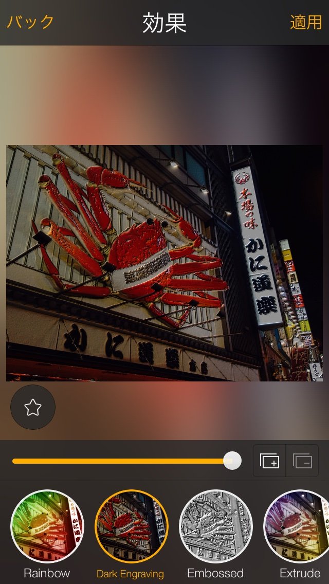 また、気に入ったフィルタは☆のマークをタップしてお気に入りに登録することができます。