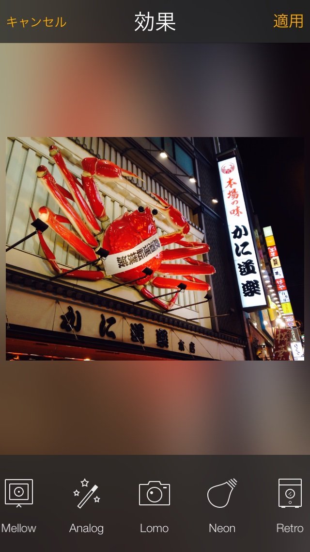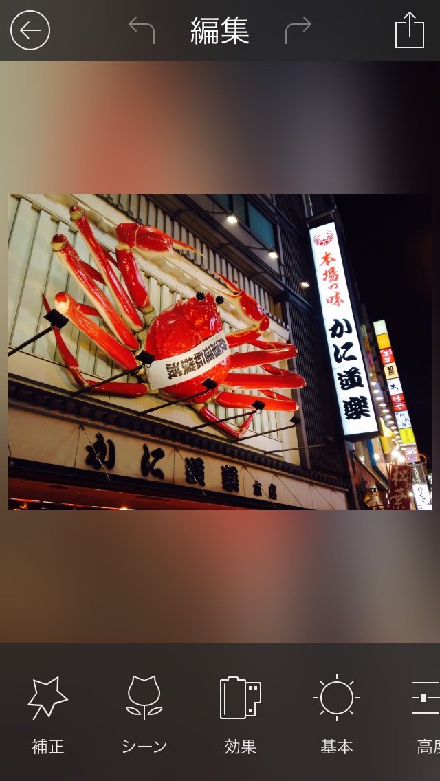 明るさやコントラストの調整と、フィルタが1つのアプリ内で使えるので、加工するのに非常に便利なんですよ。